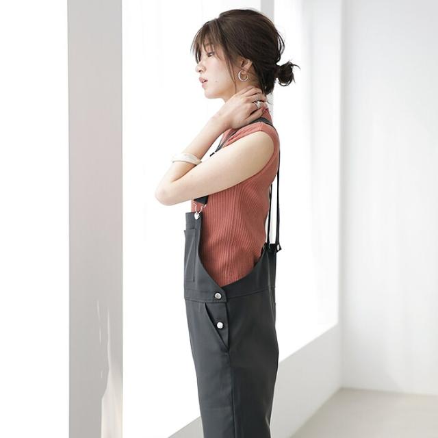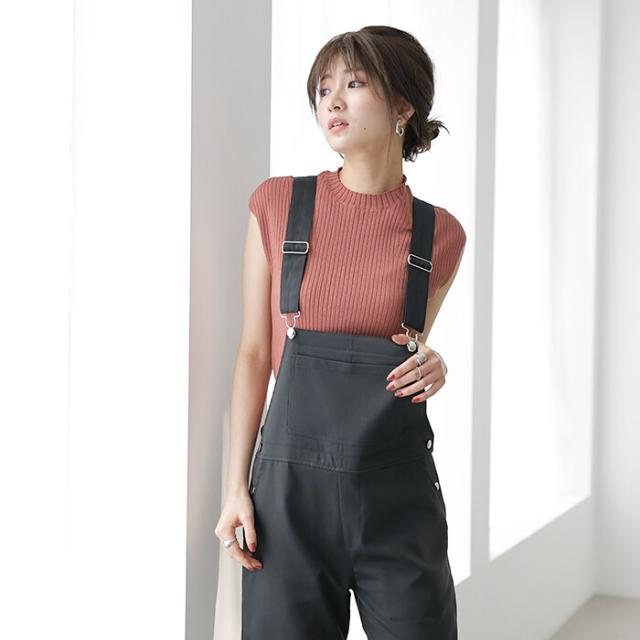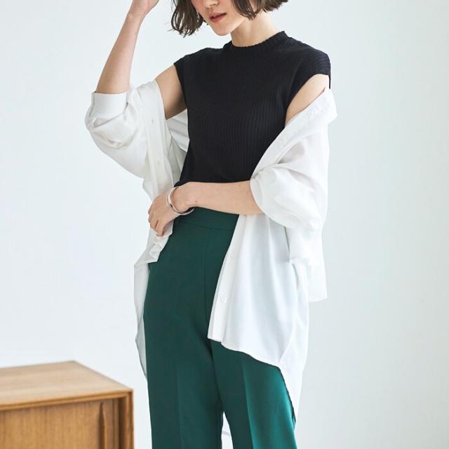 こなれ感漂うハイネックリブサマーニット