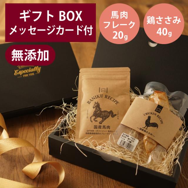 ギフトナー 国産 馬肉 フレーク 20g 鶏 ささみ 40g セット GIFTNER 犬 猫 おやつ チキン とり ふりかけ 無添加 選べるカード付き プレゼント ギフトBOX付き