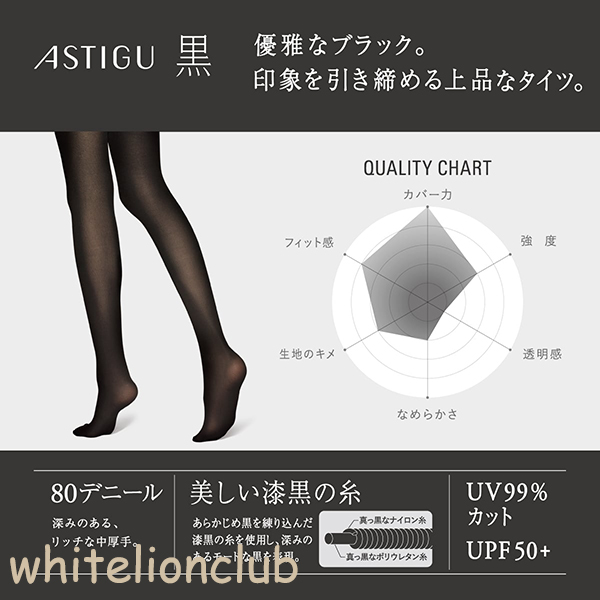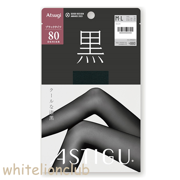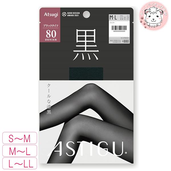 アツギ アスティーグ 黒 クールな漆黒 80デニール 3足セット S-M/M-L/L-LL | タイツ UVカット率99% UPF50+ ヌードトウ 吸汗 制菌 AP8050 ATSUGI ASTIGU