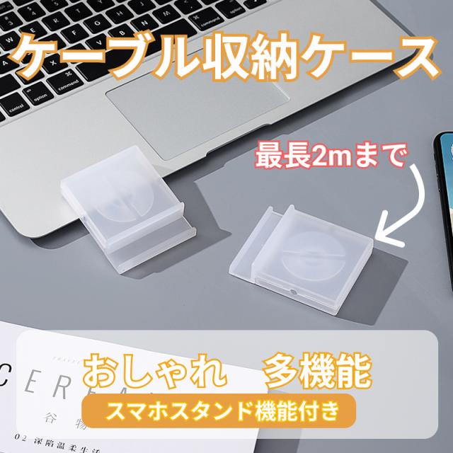 ケーブル 収納 ケース イヤホンコード 整理 ケーブルボックス ケーブルホルダー まとめる イヤホンコード巻き取りケース スマホホルダー おしゃれ 多機能 コードボックス 携帯便利 イヤホンケーブル収納ボックス コンパクト 軽量 ポータブル 透明 2mまで収納可能