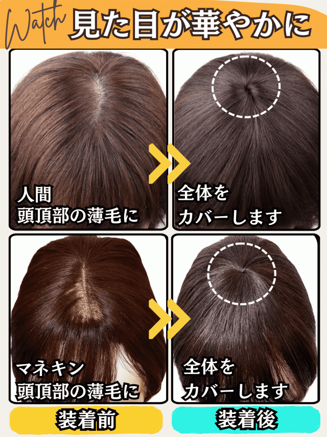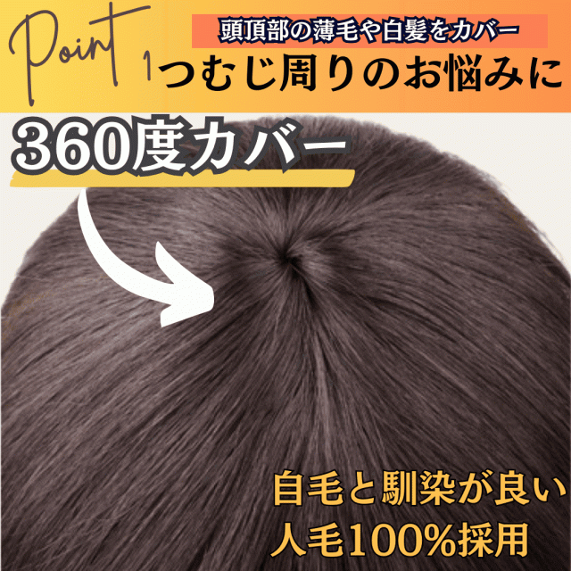 | 特徴1 | つむじや頭頂部の薄毛や生え際の白髪にお悩みの、ウィッグ、付け毛、カツラ初心者に最適の商品 |