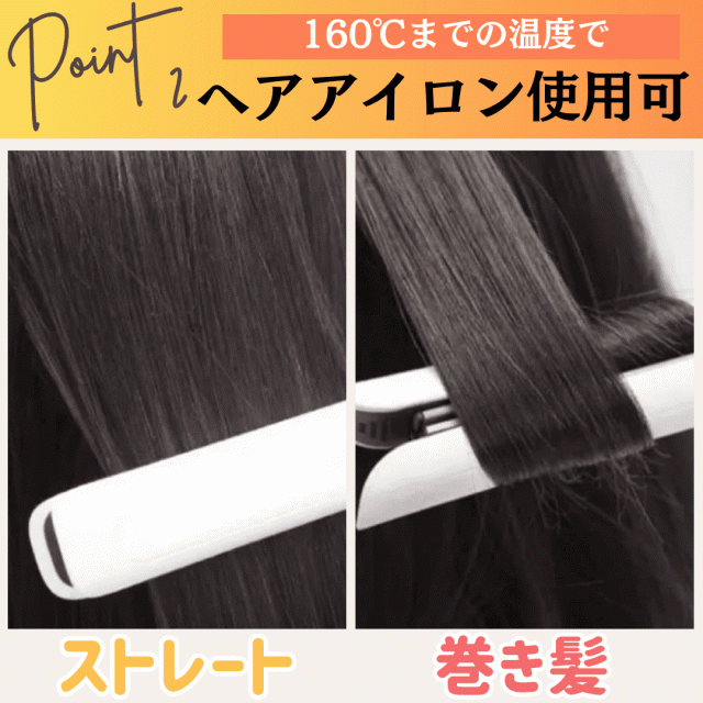 | 特徴2 | 高級人毛100%の為、ヘアアイロン、ヘアカット、シャンプーも使用可能 |