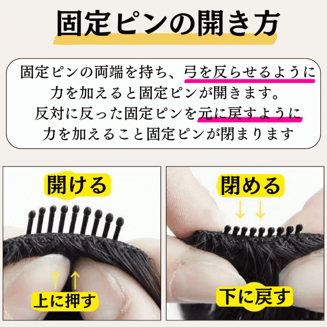 | 特徴3 | 強力固定ピンは3つで、より強固かつ自然なつけ心地を再現 |