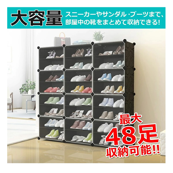 在庫僅少 組み立て式 シューズボックス 最大48足 靴箱 玄関収納 下駄箱 収納ボックス大容量 新生活 SunRuck SR-SC038-NWD