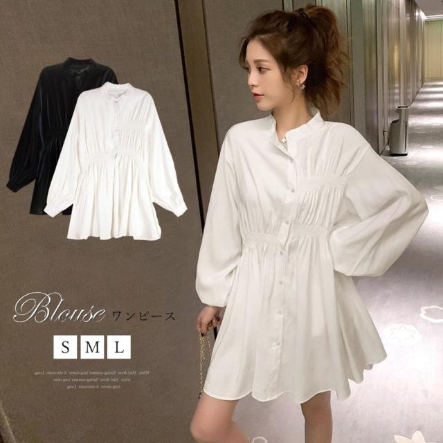 ブラウス レディース フリル 長袖 白 黒 シャツワンピース ゆったり チュニックワンピ ミニワンピース 春夏 シャツブラウス