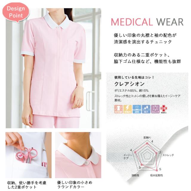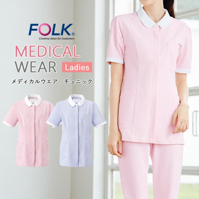 スクラブ 医療用 チュニック 白衣 ナース 看護師 医療用 FOLK ユニフォーム レディース レディスチュニック 【送料無料】動きやすい かわいい 半袖 女性 医師 介護師 病院 クリニック 薬局 歯科 研修 制服 仕事着 薬剤師 agesugi_snk