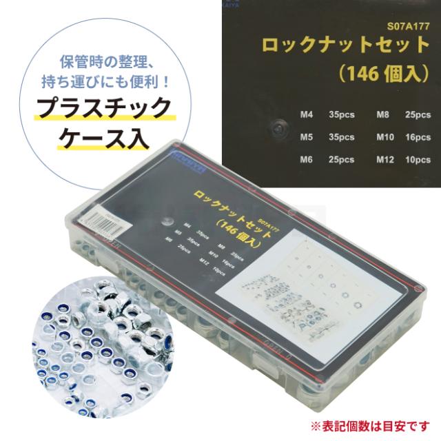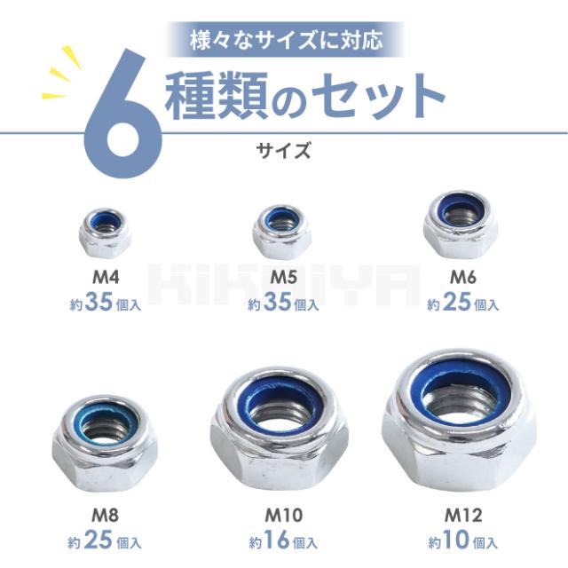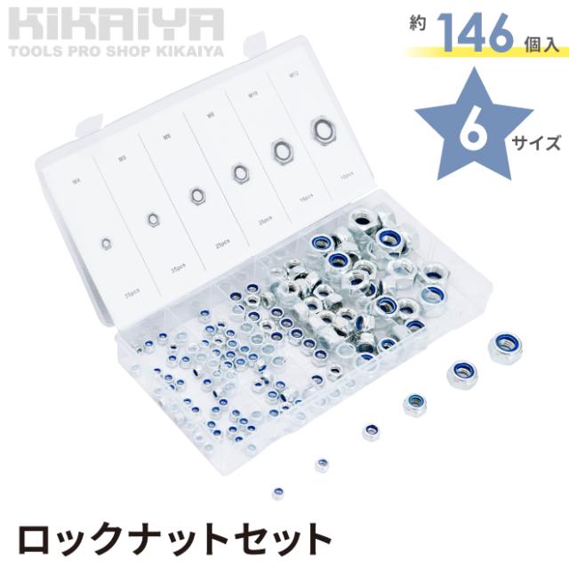 ロックナットセット 約146個入 6サイズ 収納ケース付 六角ロックナット 緩み止めナット ゆるみ止め ナイロン ナット 六角 KIKAIYA
