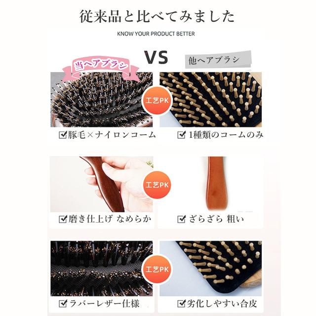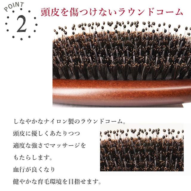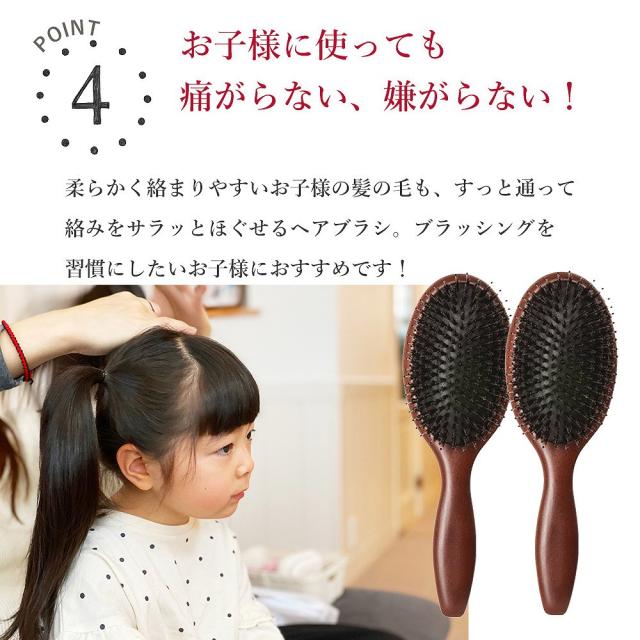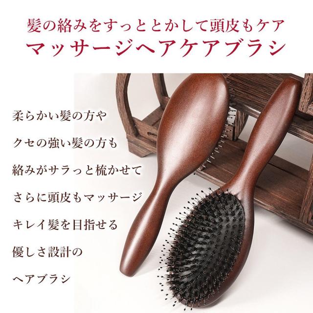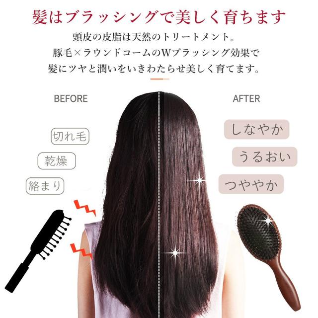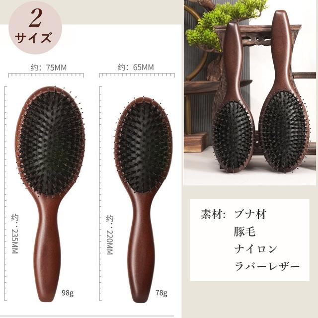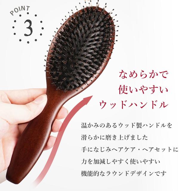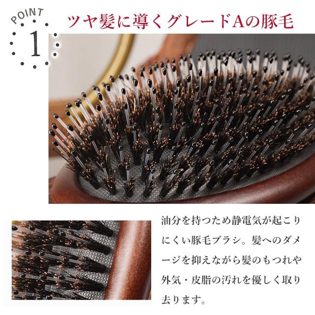 静電気を抑え髪に負担をかけずにとかせる豚毛ブラシ。