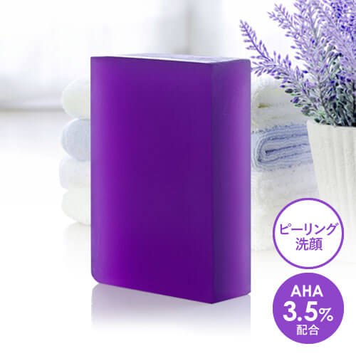 ピーリング石鹸 AHA 3.5% 高配合 グリコール酸 ティートゥリー ナイアシンアミド ヒト型セラミド ヒアルロン酸Na 固形洗顔石鹸 スキンケア にきび 洗顔 ニキビケア DeAU デアウ ピールソープ ブライト 紫 100g メール便