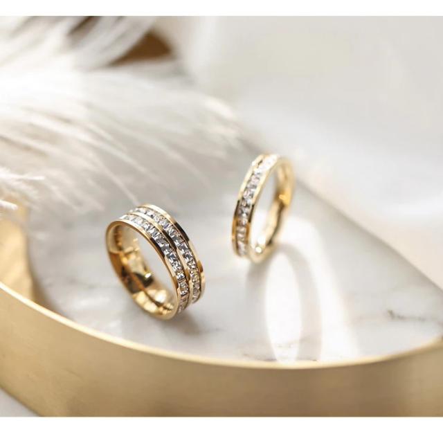 【ダブル】サージカルステンレスリング Full eternity ring 316L ステンレス製 華奢リング 極細リング ピンキーリング ミディーリング ファランジリング レディース 指輪 アクセサリー キラキラ 細反射加工 ニッケルフリー 金属アレルギー対応