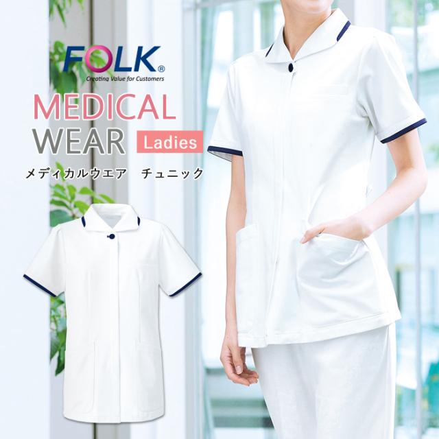スクラブ 医療用 チュニック 白衣 ナース 看護師 医療用 FOLK ユニフォーム レディース レディスチュニック 【送料無料】動きやすい かわいい 半袖 女性 医師 介護師 病院 クリニック 薬局 歯科 研修 制服 仕事着 薬剤師 agesugi_snk