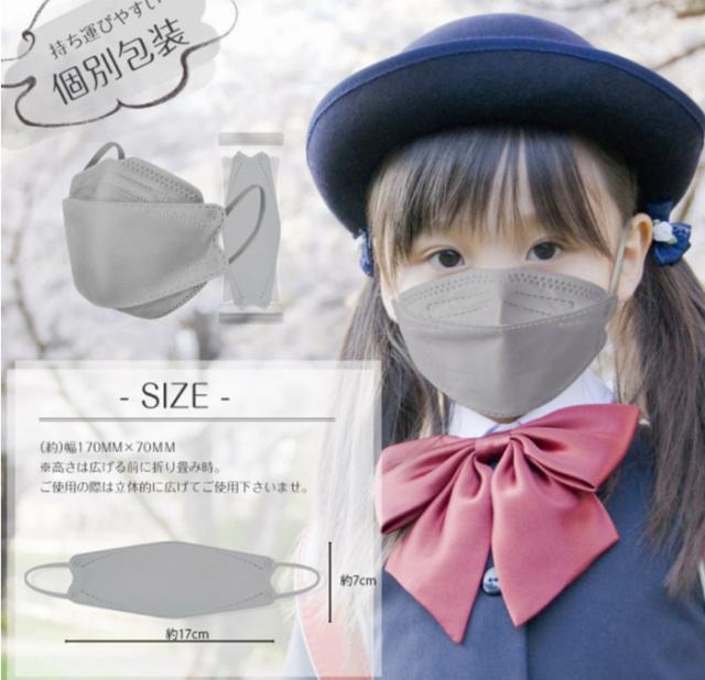 ■子供3D立体型マスク:約17×8cm ・グレー 約17×7cm