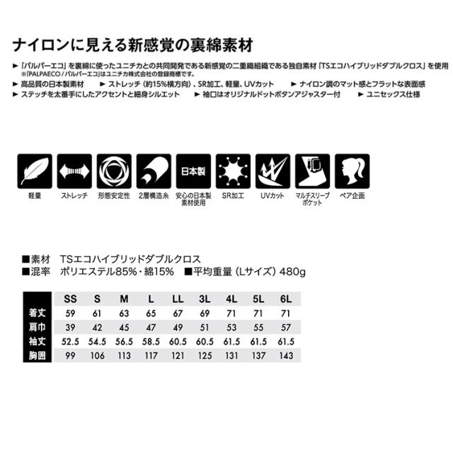 TSデザイン ワークジャケット 4616 エコハイブリッド ダブルクロス ジャケット オールシーズン 作業服 作業着 軽量 ストレッチ 男女兼用