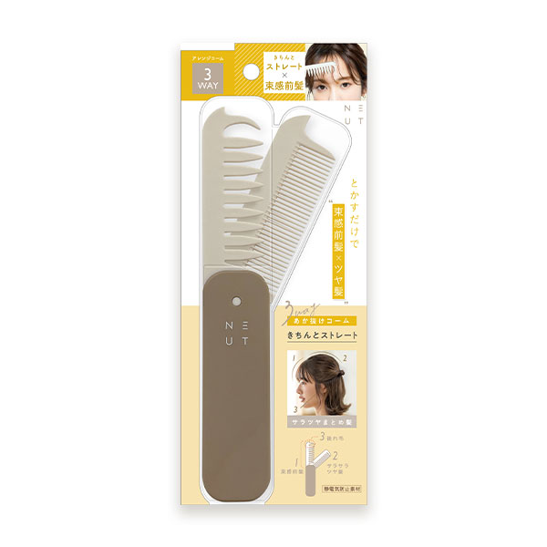 【送料込み: ニュート3WAYあか抜けコーム ( きちんとストレート ) 】 ビューティワールド ブラシ ニュート 3wayコーム 垢抜けコーム あか抜けコーム おくれ毛 束感前髪 束感前髪コーム おくれ毛 フック ヘアアレンジ ヘアアイテム ヘアブラシ 3wayブラシ