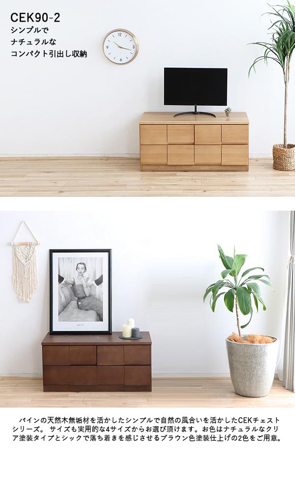 CEK-CST 2段チェスト/幅90cm 引出しの収納 タンス【2台セット】ナチュラル色 幅90×奥行45×高さ41cm パイン無垢材 強化紙 スライドレール仕様 サイドテーブル リビング収納