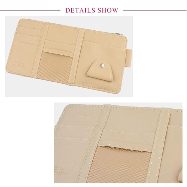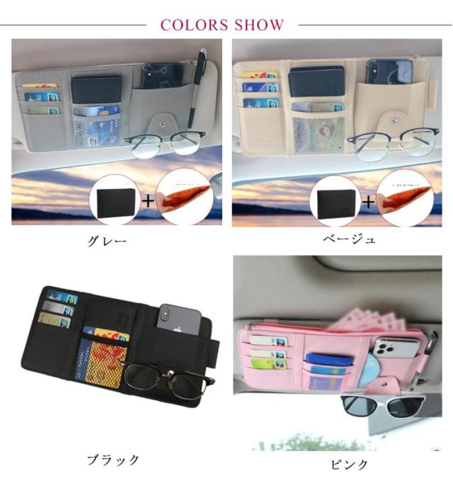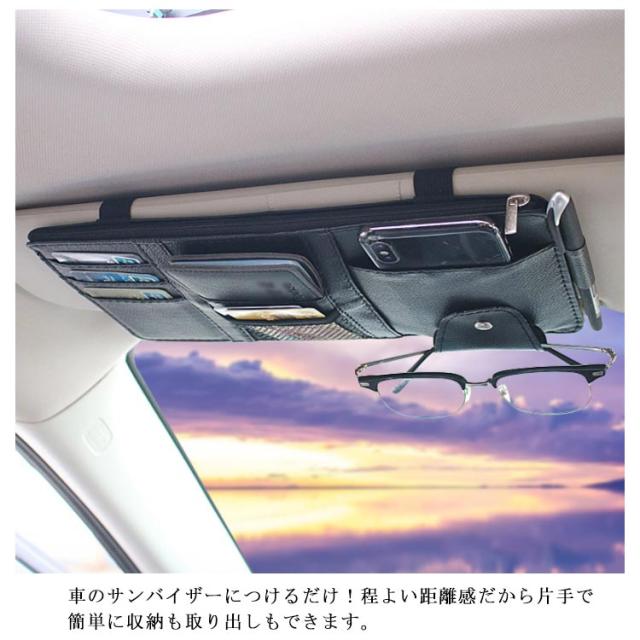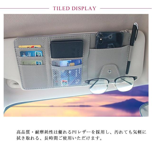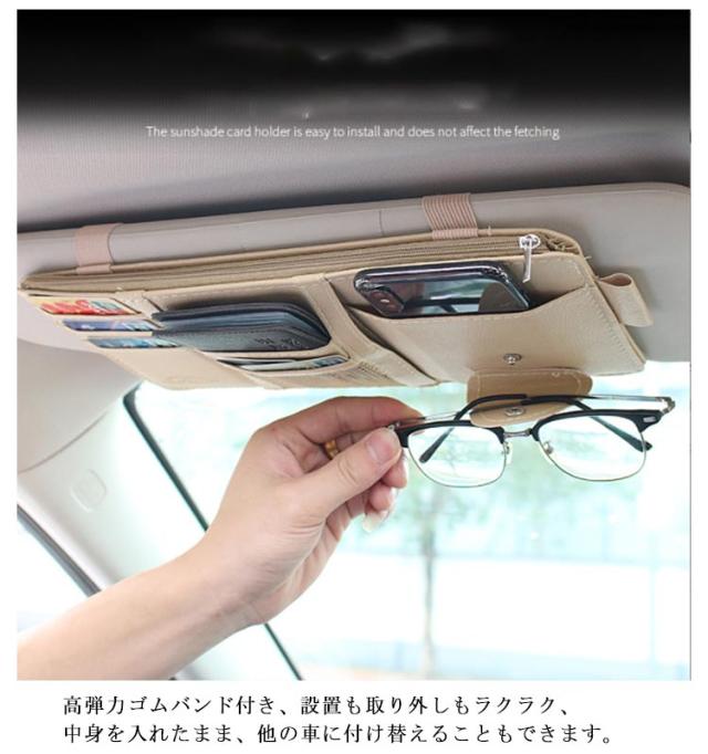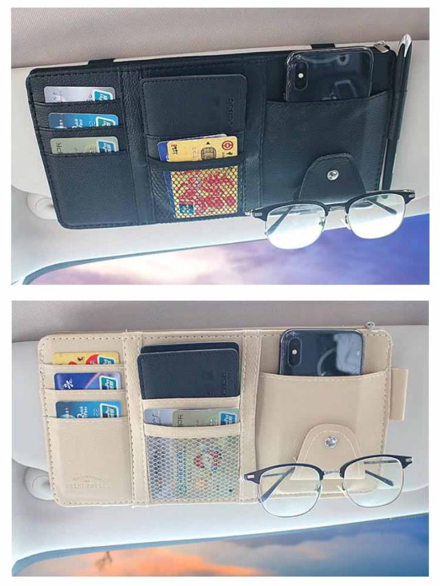 | 車内キチンと整理整頓できるサンバイザー収納ホルダー たっぷりの収納ポケットはよく使うガソリンスタンドのカードやサングラス、一時的に収納したい駐車場のチケットなどあらゆるアイテムを収納できます。 車のサンバイザーにつけるだけ!程よい距離感だから片手で簡単に収納も取り出しもできます。 高弾力ゴムバンド付き、設置も取り外しもラクラク、中身を入れたまま、他の車に付け替えることもできます。 高品質・耐摩耗性は優れるPUレザーを採用し、汚れても気軽に拭き取れる、長時間ご使用いただけます。 | |