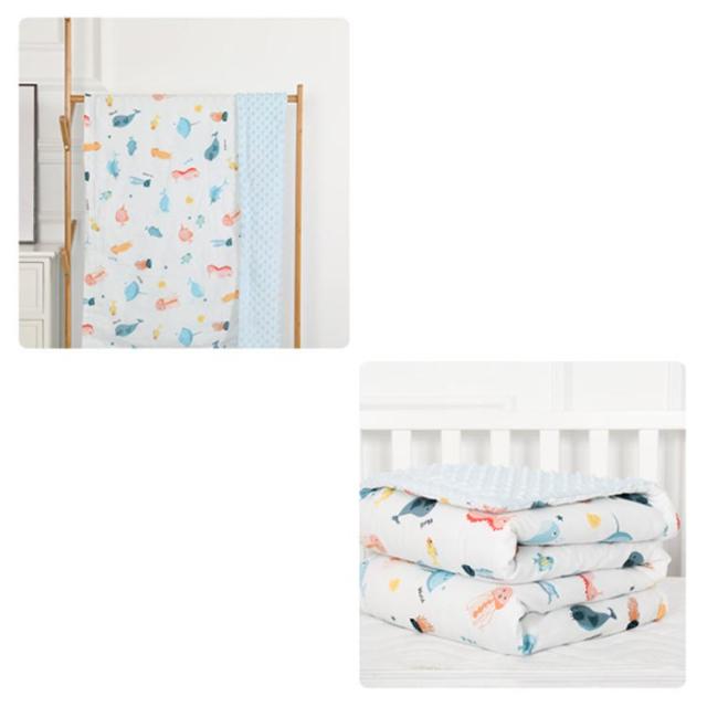 | お子様のお昼寝にも、お出かけにも使える便利なブランケット 独特の構造で織られており、柔らかく通気性に優れた生地です。 裏面にはもこもこ素材で繊維自体が発熱してくれるから体を毛布で包んだ瞬間からふんわりあったか。 汚れても大丈夫です!ご自宅で洗えるからいつも清潔、お手入れ簡単です。 夏の冷房対策、お昼寝時のブランケットや外出時のベビーカー用ブランケットとしても最適なアイテムです。 | |