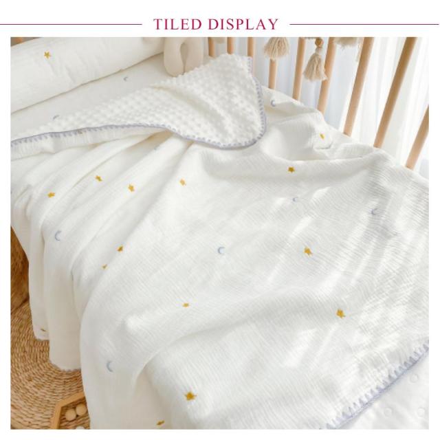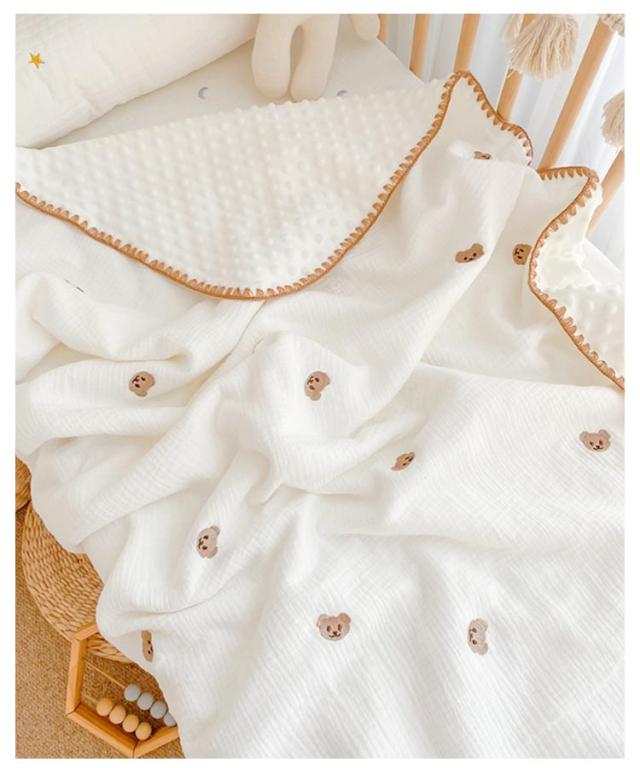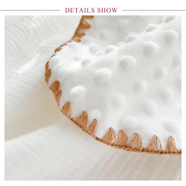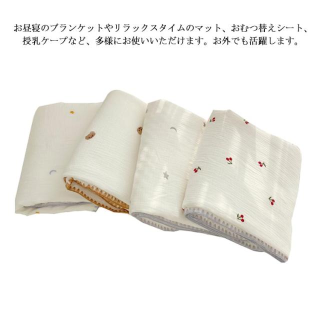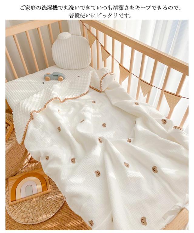 | お子様のお昼寝にピッタリのブランケット 天然のコットン素材を使用する。通気性があり、吸水性に優れています。適度に保温しながら体温や汗を放湿してくれるので、ベビーにぴったりの素材です。 薄くも厚くもない適度なボリューム、気軽に使える心地よさと汗をかいてもサラっとベタつきにくい使用感。 ご家庭の洗濯機で丸洗いできていつも清潔さをキープできるので、普段使いにピッタリです。 可愛い刺?、丈夫でキレイな縫製は長くご愛用いただけます。 お昼寝のブランケットやリラックスタイムのマット、おむつ替えシート、授乳ケープなど、多様にお使いいただけます。お外でも活躍します。 | |
