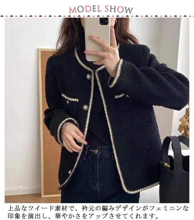 ジャケット レディース 長袖 ツイード アウター 春服 秋服 カーディガン ノーカラージャケット おしゃれ 入学式 卒業式 卒園式 韓国ファッション 上品 きれいめ オフィス 通勤 OL フォーマル 結婚式