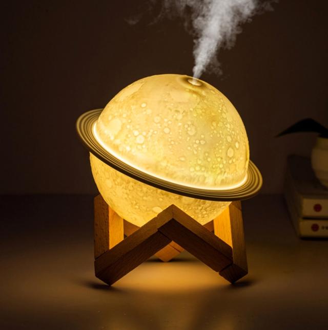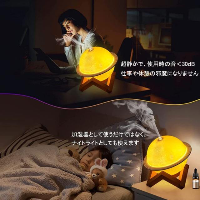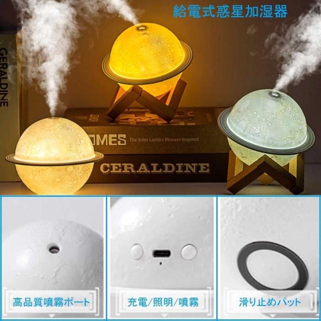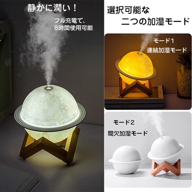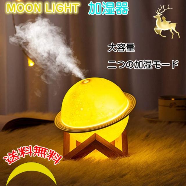 ムーンライト加湿器 卓上加湿器 超音波加湿器 ナイトライト 3色ライト アロマ対応 アロマ 惑星ランプ アロマランプ 静音 USB給電式 空気清浄