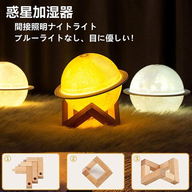 【創意惑星加湿器&実用性&乾燥を防ぐ】惑星ランプ加湿器は3D印刷技術を採用して、惑星の淡い縞模様・巨大な環・山脈・谷の凹凸感を90%に再現します。ワンタッチ操作式ナイトライト加湿器はみんなに惑星が触られる驚きを与えたいです。3つモード加湿機能、3つライト照明機能が付き加湿器はおしゃれだけでなく、実用性もいい。宇宙でいろんな惑星があり、ぞれぞれの惑星も一番美しくて独特な存在です。また、お肌の乾燥を防ぐ噴霧式で加湿する同時に、リラックスな雰囲気を醸し出す。パソコンやタブレットの画面を長時間見つめていると目が乾燥して、加湿によりドライアイ(目の乾き)防止にも役立つ。それに、風邪、鼻づまり、アレルギー、喘息など病気を緩和でき、全年使用できます。