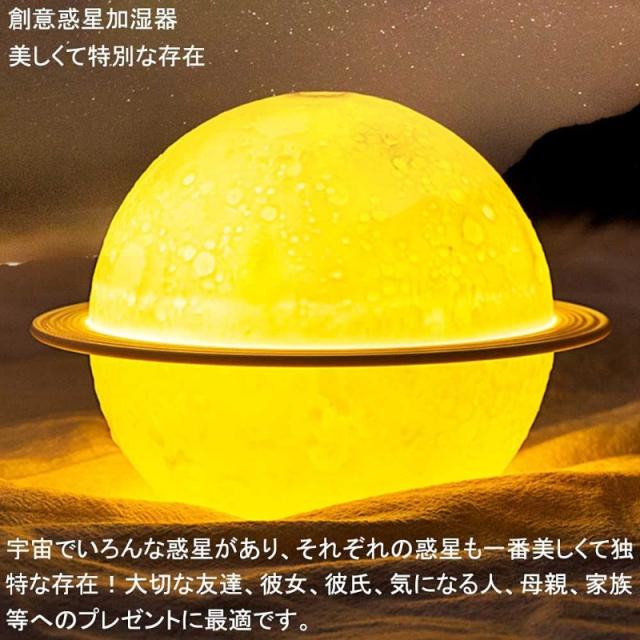 【メリット&最適なプレゼント】惑星ランプ卓上加湿器は3色LEDライト/3種スプレー調整モード/水溶性アロマ対応/8時間静音作業/空焚き防止/滑り止めパット/芸術性・高級感・創造力など様々なメリットがあります。また、「美しくて特別な存在」という意味が含まれた惑星ランプ加湿器は大切な友達、彼女、彼氏、母親・父親・大切な家族などへのプレゼントに最適です。