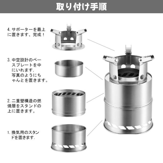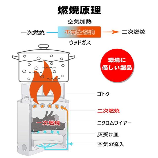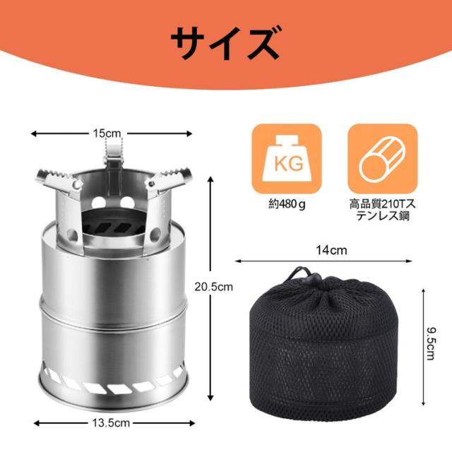 内容:ウッドストーブ、火吹き棒、メッシュパケット、取扱説明書