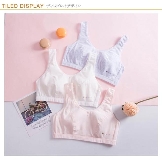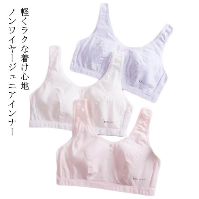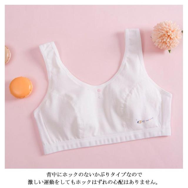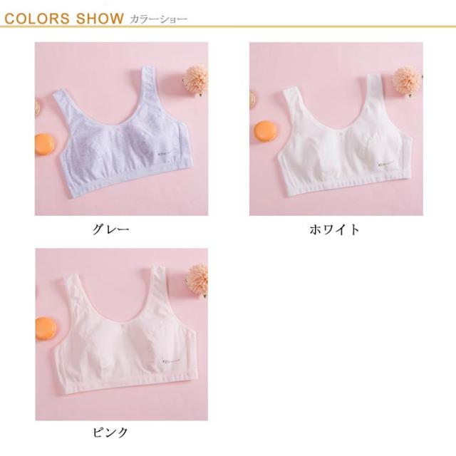 | 軽くラクな着け心地ノンワイヤージュニアインナー 安心・天然の綿素材を採用し、柔らかく成長するバストを優しく守ります。 背中にホックのないかぶりタイプなので激しい運動をしてもホックはずれの心配はありません。 シンプルなデザインで、学校での着替えでも目立たず、普段使いやスクール用に幅広くご利用いただけます。 | |