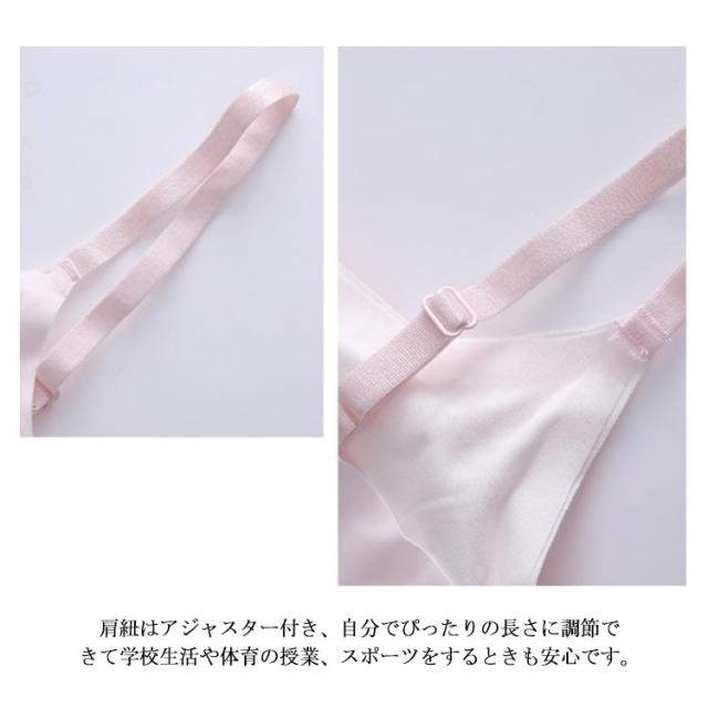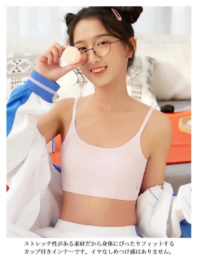 | 小学生、中学生の女子向けキッズ・ジュニア用カップ付インナー 涼感のある素材を使用して、ベタつかないから一日中サラッとした肌触り、お洗濯しても乾きやすい。 肩紐はアジャスター付き、自分でぴったりの長さに調節できて学校生活や体育の授業、スポーツをするときも安心です。 縫い目が少ないつくりなので服の中でもたつきません。 ストレッチ性がある素材だから身体にぴったりフィットするカップ付きインナーです。イヤなしめつけ感はありません。 | |