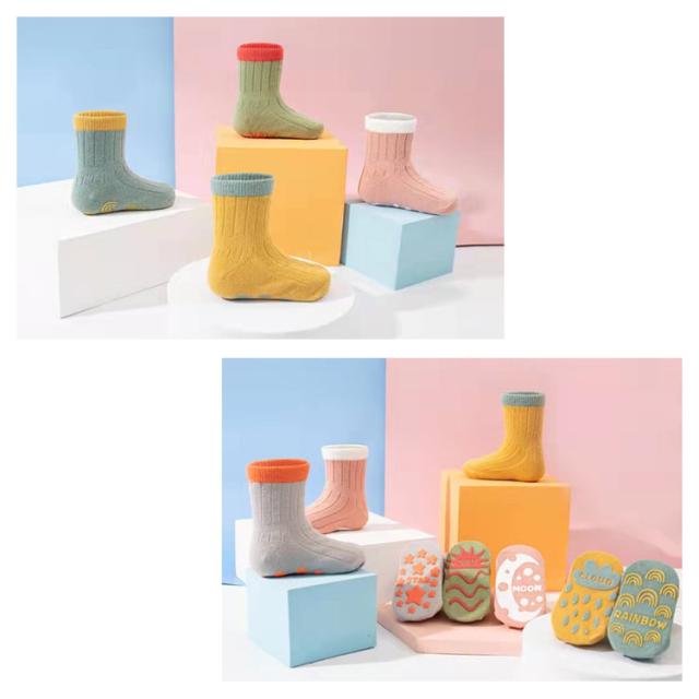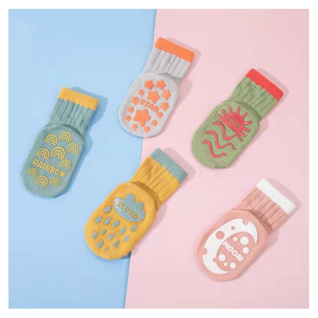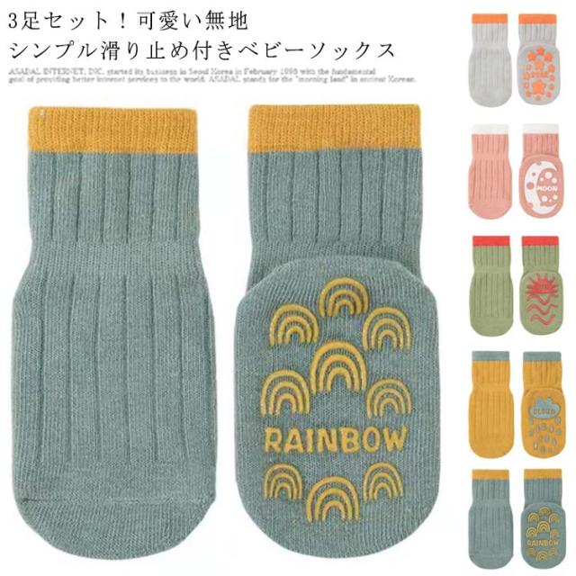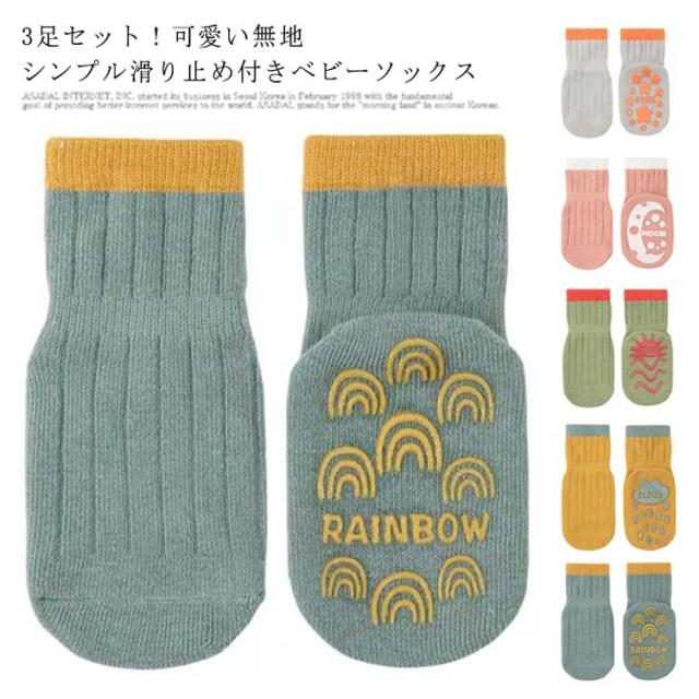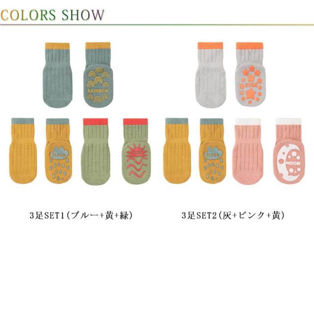 靴下 ベビー 3足セット ソックス キッズ 子供用靴下 赤ちゃん 新生児 靴下 ベビーソックス 男の子 女の子 ベビー用品 滑り止め付き コットン 綿 天気 虹 雨 太陽 星 月 送料無料