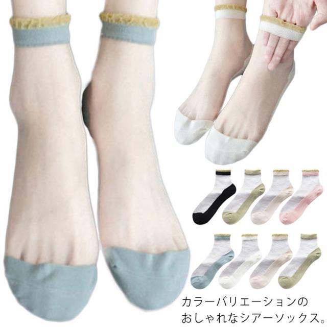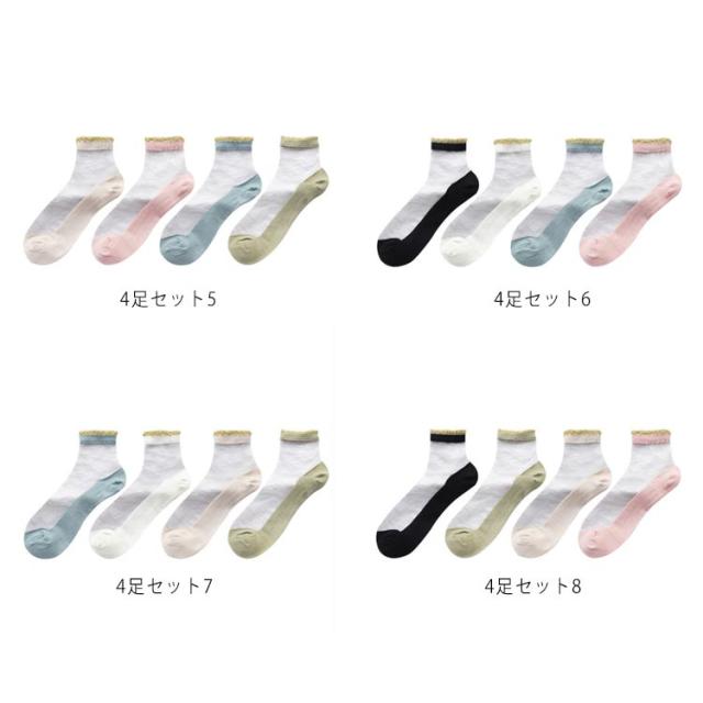 シースルーーソックス 4点セット ソックス 靴下 レディース シースルーー シアー 脱げにくい くつした くつ下 スニーカーソックス ショートソックス かわいい おしゃれ フリル 春 夏 カラフル 春服 フェミニン シンプル 透け感 薄手 くるぶし 送料無料