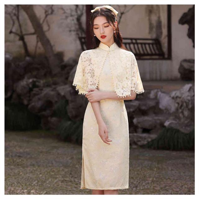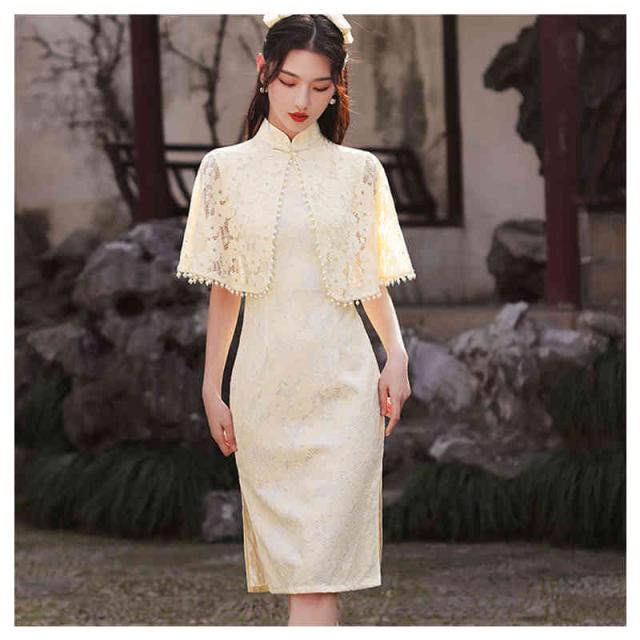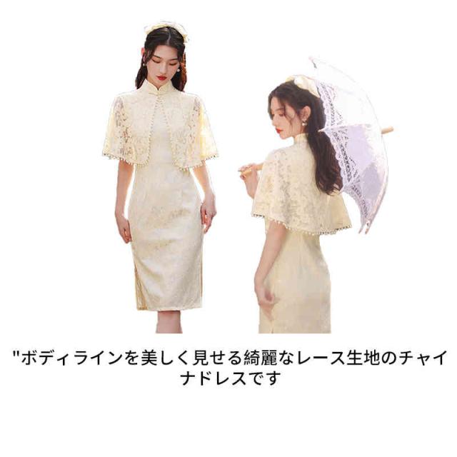 2点セット チャイナ ワンピース チャイナドレス ロング ストール マント カジュアル レースセクシーチャイナ服 刺繍 コスプレ セクシー 大きいサイズ 半袖 チャイナ服 ロリ 高級 セクシーチャイナ パーティー 演奏会 発表会 結婚式 マキシ丈 中華服 仙女 民族風