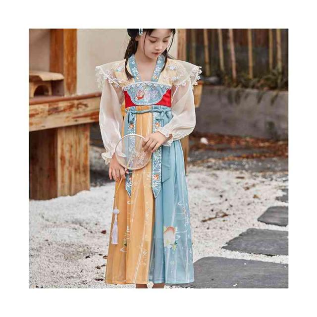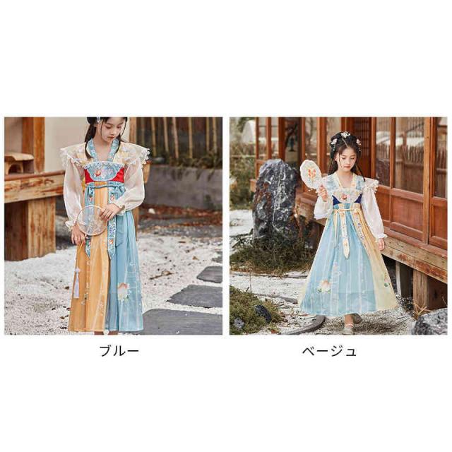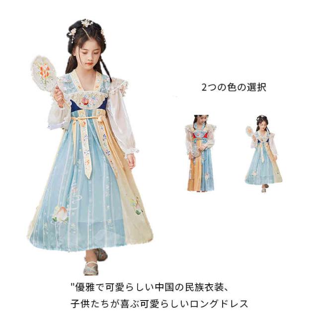 中華風 チャイナドレス キッズ コスプレ ワンピース 普段着 セットアップ コスチューム 子供服 唐装漢服 女の子 古典 中国古風 漢服 子供ドレス 女子 演出衣装 舞台衣装 写真撮影 学園祭 文化祭 女児 古典ダンス ロング チャイナ風 チュール 人気 かわいい 仮装刺繍