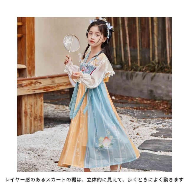 | 優雅で可愛らしい中国の民族衣装、子供たちが喜ぶ可愛らしいロングドレス 生地に花柄刺繍が施されており、上品で華やかなデザインとなります レイヤー感のあるスカートの裾は、立体的に見えて、歩くときによく動きます 日常の遊び、お祭り、舞台公演、遊園地、外出、花見などにご利用いただけます | |