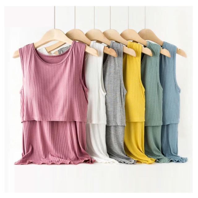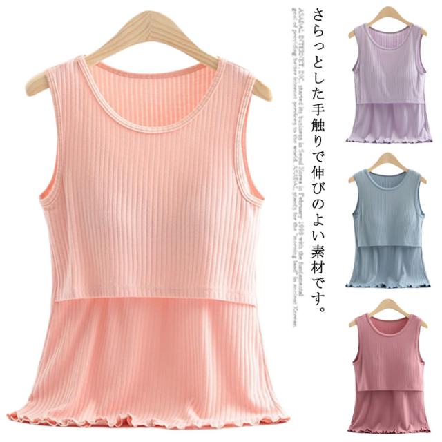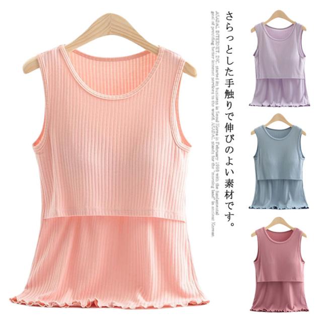 タンクトップ マタニティ 授乳服 授乳インナー 送料無料 キャミソール ノースリーブ クロスオープン 細身 肌着 授乳キャミ トップス 春夏 カップ付き 無地 ロング丈 シンプル