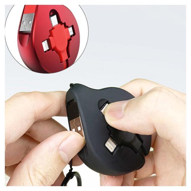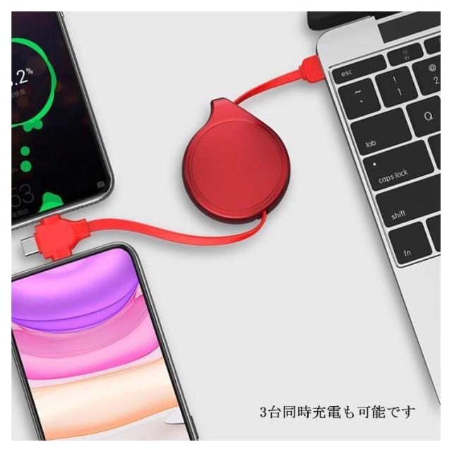 | 一本のUSBケーブルで、3台(MicroUSB、Lightning、Type-c)を充電することが可能な3in1巻き取り式充電ケーブルです。 3台同時充電も可能です。 超純銅コアとTPE素材で作られたケーブルは安全で耐久性があり、ケーブルに起こりがちな断線を防ぎます。 | |