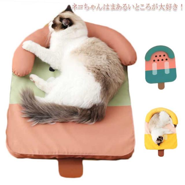 フルーツアイスキャンディーモチーフ ペットベッド 犬猫用 犬用ベッド 猫寝床 アイスシルク ネコベッド冷感 冷感パッド 犬用 猫用 ひんやりマット クールマット 接触冷感 夏 防水 頸椎負担軽 丸洗い 繰り返し シーツ ペット用 熱中症対策 暑さ対策 かわいい