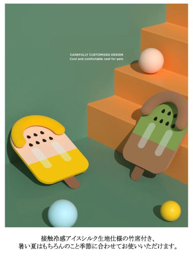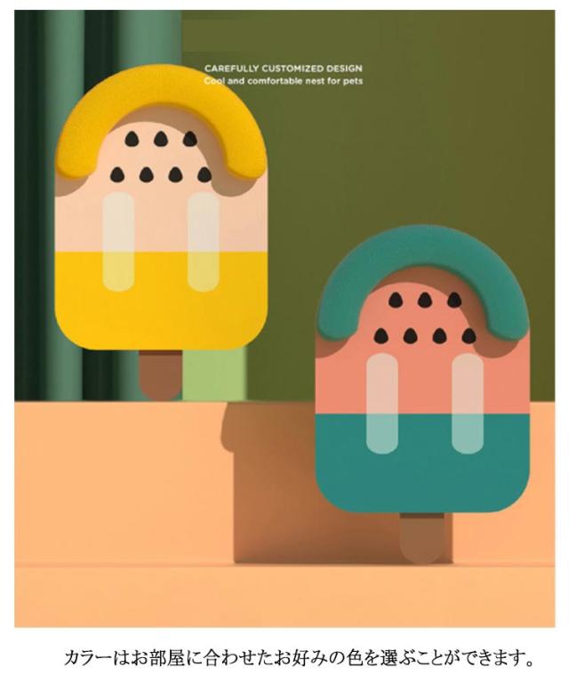 | ネコちゃんはまあるいところが大好き! あごを乗せたりするのが好きな子におすすめのフルーツアイスキャンディーモチーフベットです。 お部屋に置いておくだけでかわいい、ペットが入っている姿を見るだけで愛くるしさ倍増です。 接触冷感アイスシルク生地仕様の竹席付き、暑い夏はもちろんのこと季節に合わせてお使いいただけます。 カラーはお部屋に合わせたお好みの色を選ぶことができます。 | |