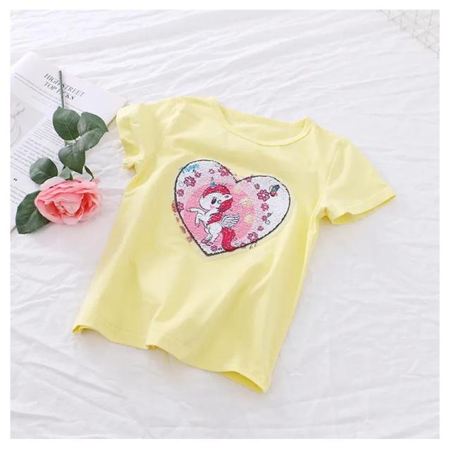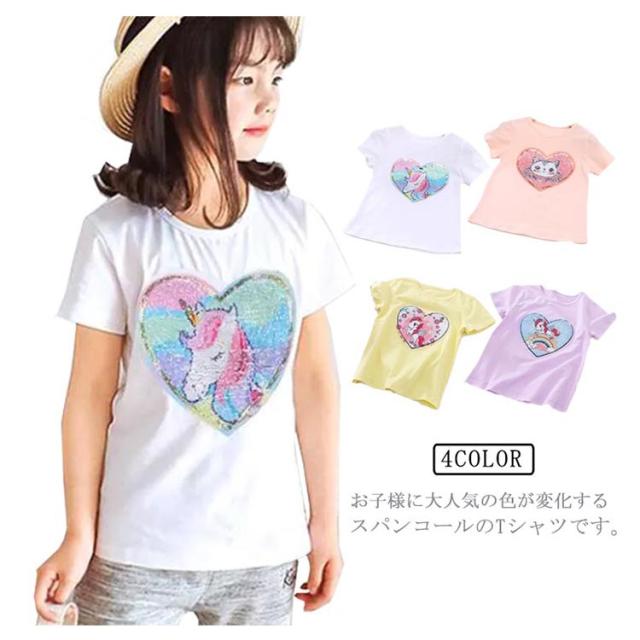 スパンコール 半袖Tシャツ 女の子 送料無料 半袖カットソー トップス キッズ 子供服 女の子 ユニコーン 無地 春 夏 ダンス衣装 韓国子供服 通園 通学 プレゼント 100cm 110cm 120cm 130cm 140cm