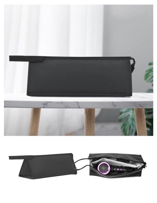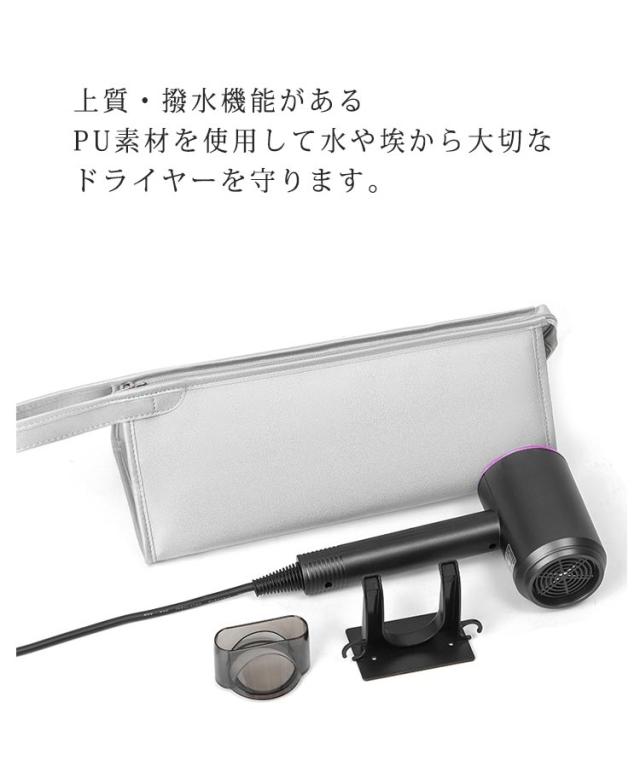 | 持ち運びや旅行に最適!ダイソンドライヤー専用収納ポーチ 仕切り仕様のポケットが備えられているので、ヘアアイロンやスタンドなどを分けて収納することができるのもポイントとなっています。 上質・撥水機能があるPU素材を使用して水や埃から大切なドライヤーを守ります。 汚れ部分は拭き取るだけでお手入れも簡単です。 持ち手を付属しているため、吊り収納また出張、旅行の持ち運びも楽ちん♪ | |