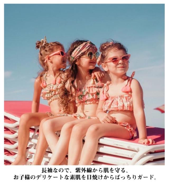 2点セット タンキニ 水着 女の子 長袖 ラッシュガード スイムウェア パンツ セパレート キッズ プール フリル 子供 水着 花柄 ジュニア 子ども用 みずぎ おしゃれ スイミング 90-140cm 送料無料