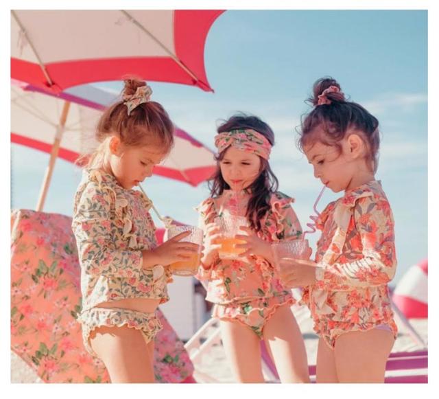 | カラフルで目を引く花柄デザイン、脱ぎ着がしやすい作りになってる水着です。 セパレートで動きやすい、大きなフリルがかわいい。 長袖トップスとショートパンツの組み合わせ! 長袖なので、紫外線から肌を守る、お子様のデリケートな素肌を日焼けからばっちりガード。 お洒落Girlも大満足、フリルで愛らしさ! 今年の夏はいっぱいいっぱい遊ばせたい、夏の思い出を残すアルバムにも、最高に可愛い姿を残す。 | |