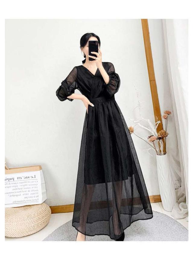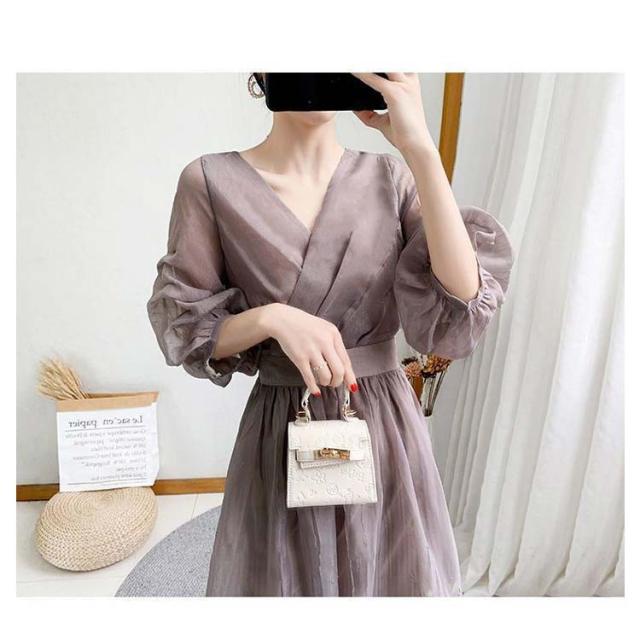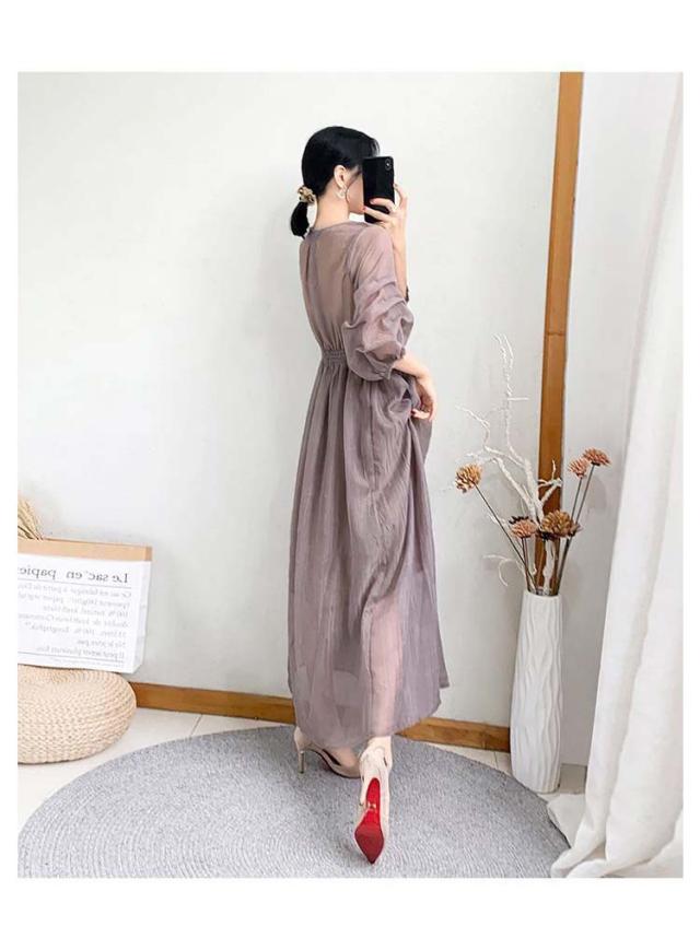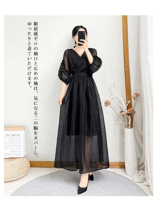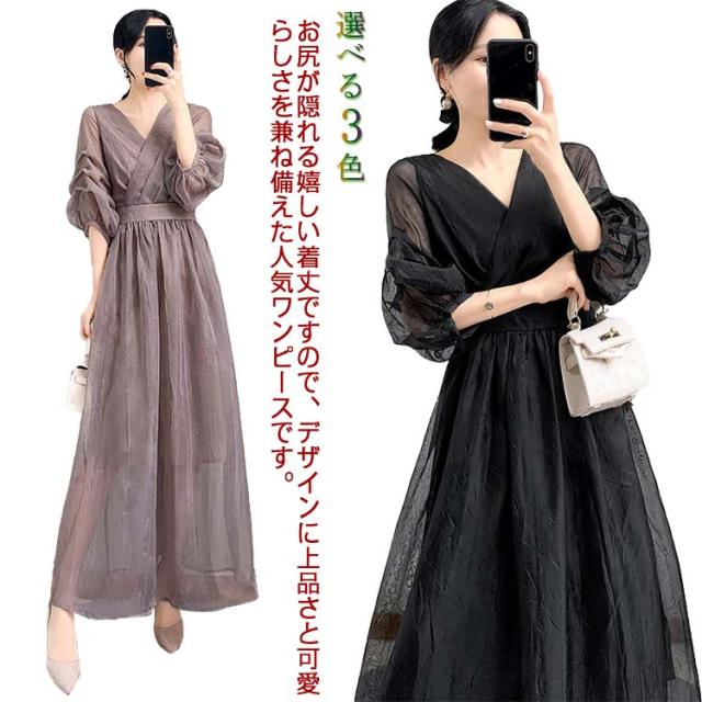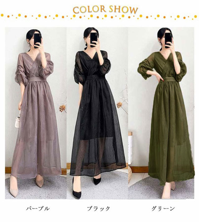 ワンピース ワンピ ロングワンピース フレアワンピース aラインワンピース ドレス 袖あり フレンチスリーブ 体型カバー パーティ 結婚式 婚活 フォーマル 大きいサイズ パープル ブラック グリーン