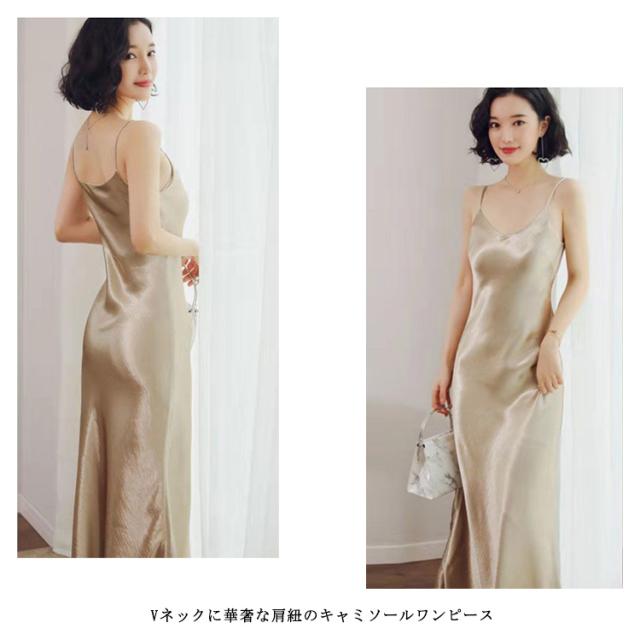 サテンキャミソール ロングキャミソール シルクタッチ キャミワンピース マキシワンピース サテンキャミソール セクシー フォーマル トップス 春夏 レディース
