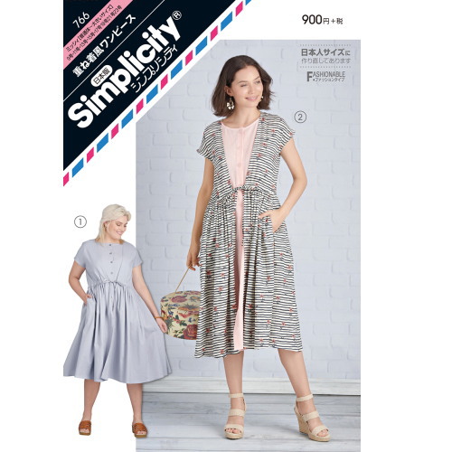 フレンチスリーブ、ひざ下丈。2は前身頃を別布にして縦ラインを強調。