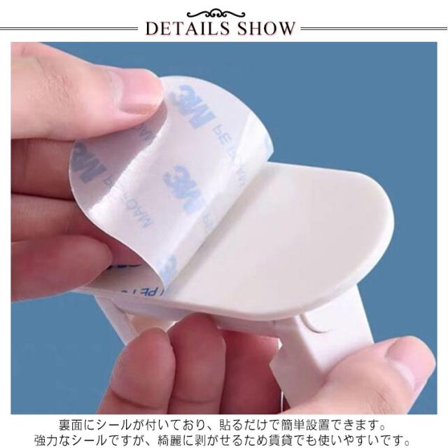 | ドアノブを赤ちゃん・子供が開けられなくする対策に♪ ドアノブを挟み込んで上にあるボタンを押してバーを横向きに倒すことでロックを解除する仕組みのため、赤ちゃんのドア開けを防止。 裏面にシールが付いており、貼るだけで簡単設置できます。強力なシールですが、綺麗に剥がせるため賃貸でも使いやすいです。 猫などペットのいたずら、地震対策にも役に立ちます。 | |