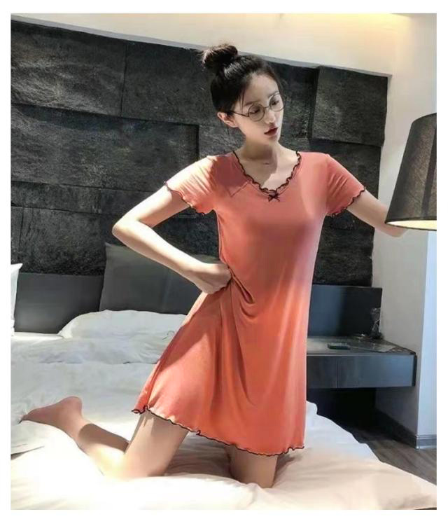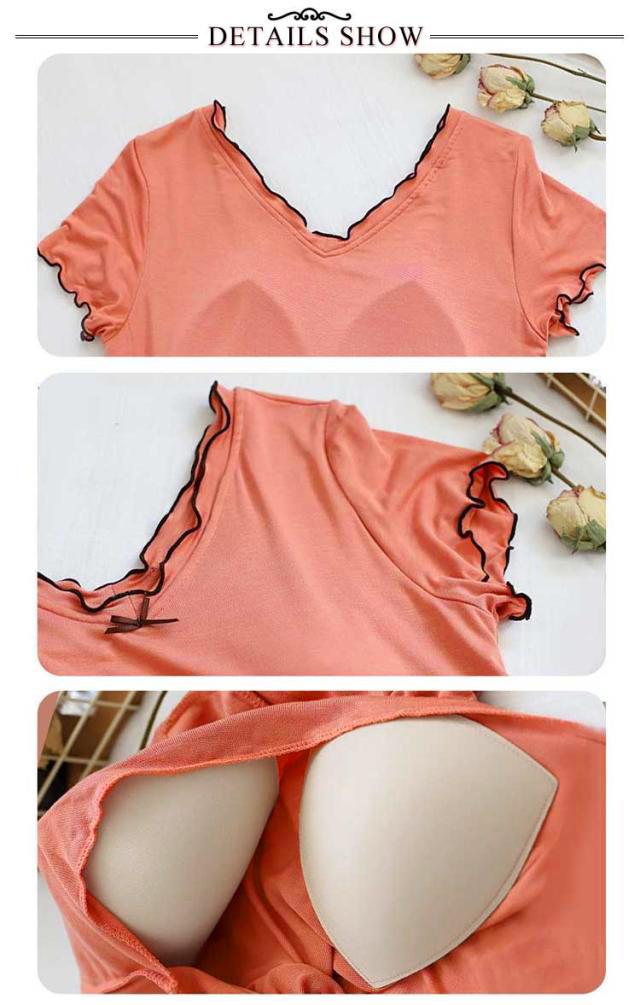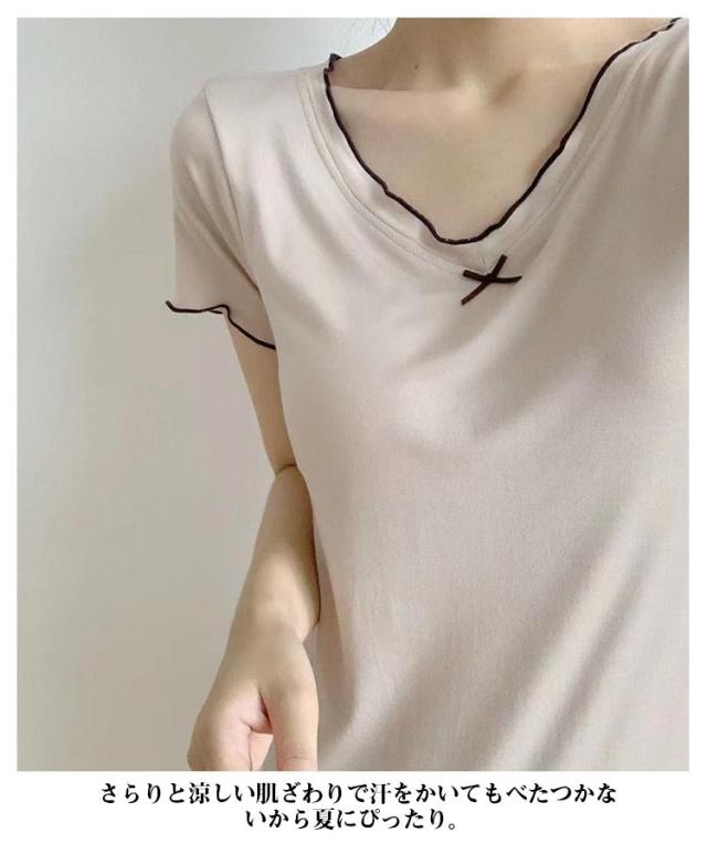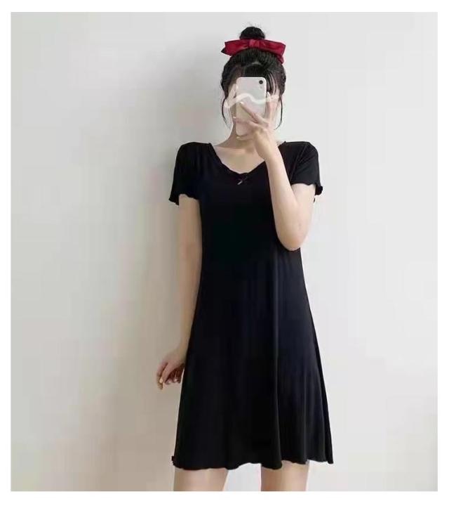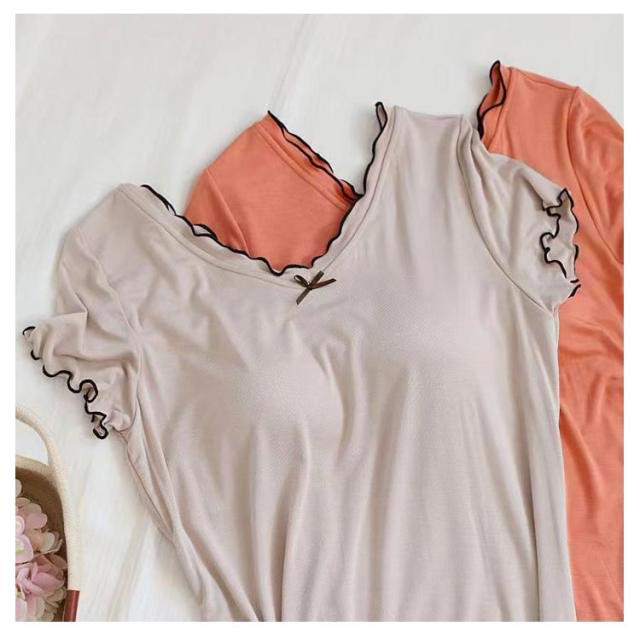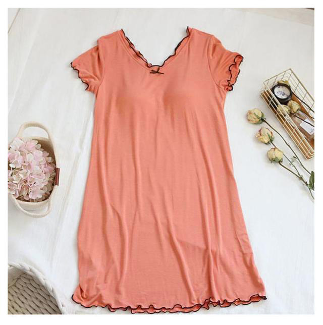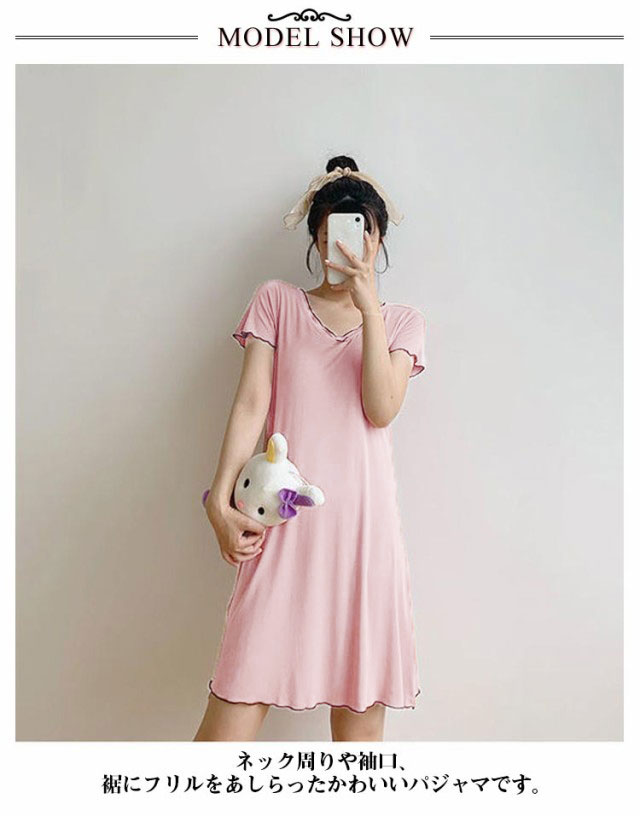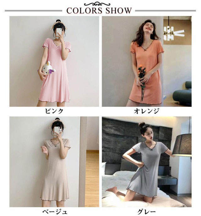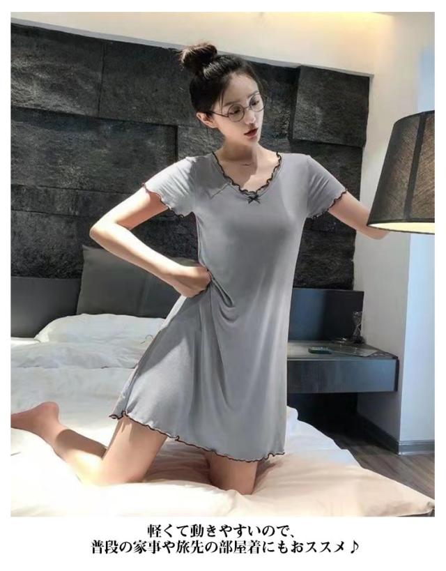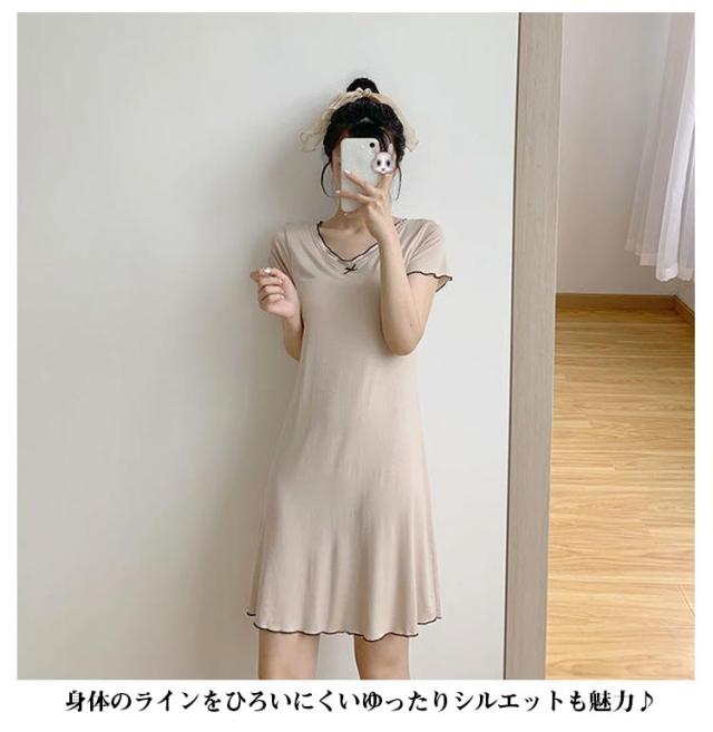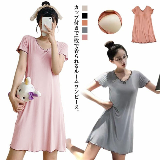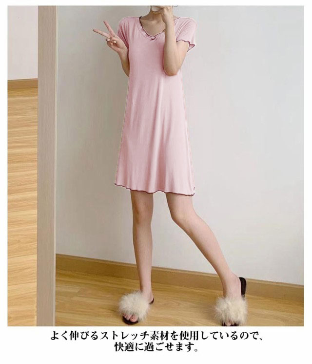 カップ付き ルームウェア レディース ワンピース ルームワンピース 部屋着 半袖 Vネック 膝上 膝丈 ワンピース パジャマ 送料無料 Tシャツ インナー ロングワンピース 寝巻き 寝間着 ナイトウェア 肌着 ストレッチ ゆったり 体型カバー モダール 春 春夏 シンプル 無地