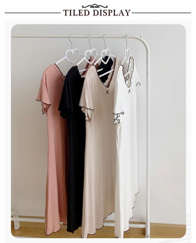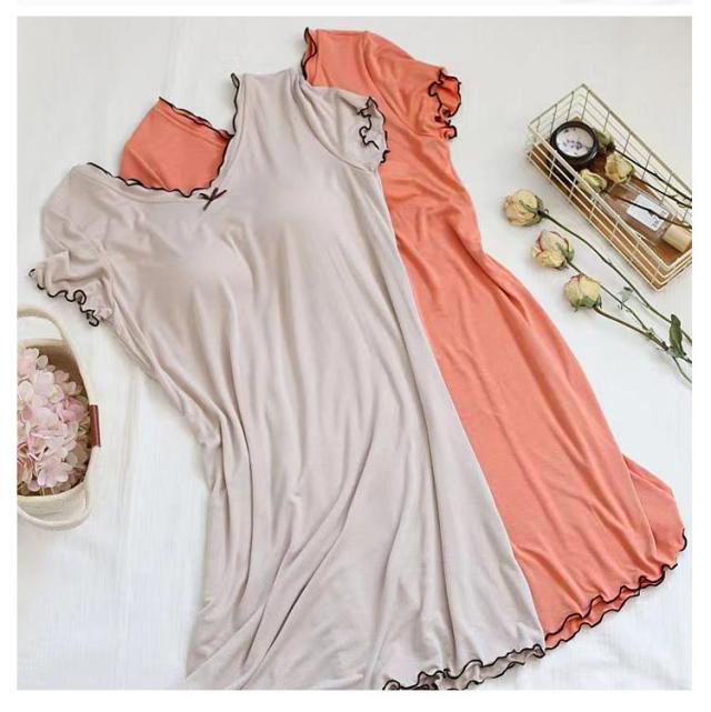 | カップ付きで1枚で着られるルームワンピース。 ネック周りや袖口、裾にフリルをあしらったかわいいパジャマです。 よく伸びるストレッチ素材を使用しているので、快適に過ごせます。 身体のラインをひろいにくいゆったりシルエットも魅力♪ さらりと涼しい肌ざわりで汗をかいてもべたつかないから夏にぴったり。 軽くて動きやすいので、普段の家事や旅先の部屋着にもおススメ♪ | |