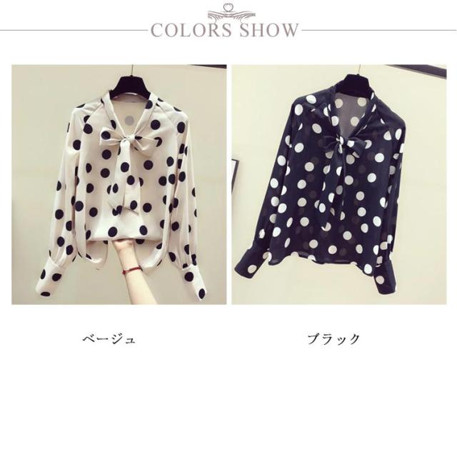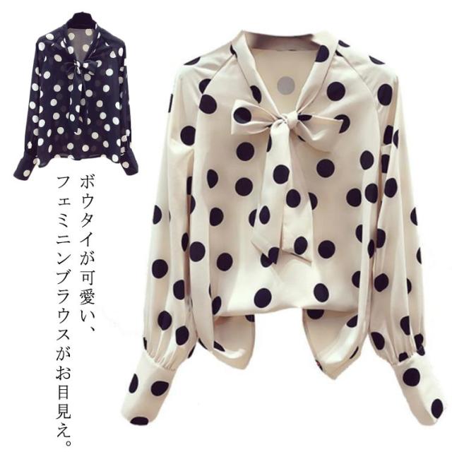 ボウタイ ブラウス 長袖 ドット柄 レディース 長袖ブラウス リボン ブラウス 白ブラウス レディース プルオーバー 長袖シャツ フォーマル オフィス カジュアル きれいめ 上品 無地 シンプル おしゃれ 大人 かわいい 韓国ファッション 通勤 通学 ビジネス デート 女子会