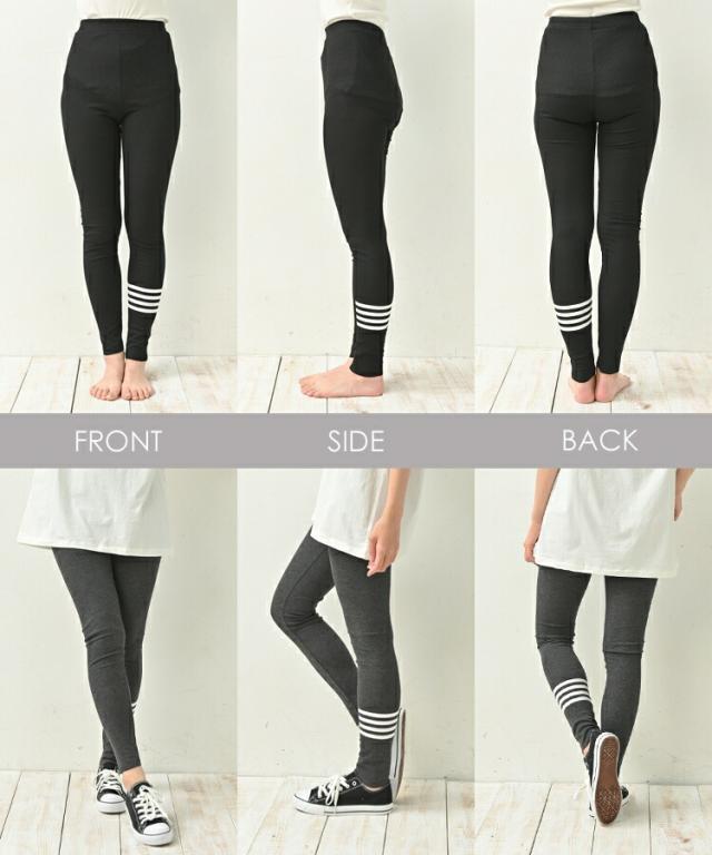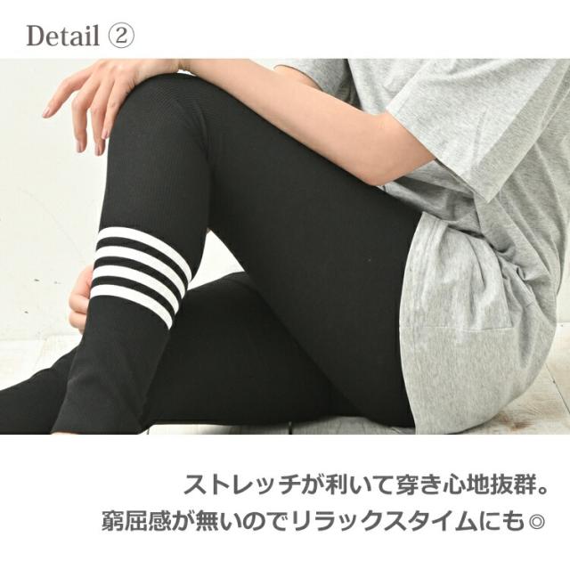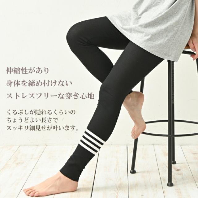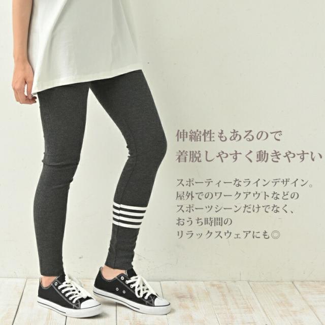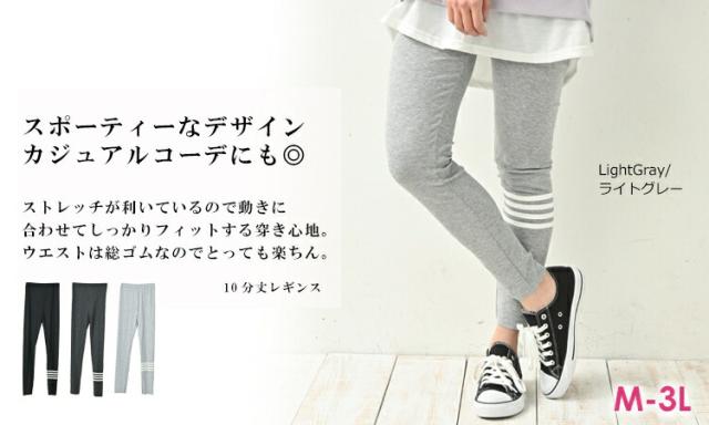 【メール便対応】スポーティーなラインデザインでカジュアルコーデにも◎10分丈レギンス